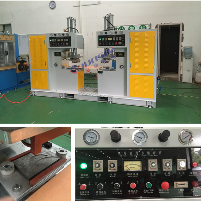 防褥瘡氣墊床焊接機是高頻熔斷機,為高頻介質加熱兼切斷之設備。因介質損耗而發熱,加壓力達到熔接或成型的目的。介質材料所產生熱量與電場強度的平方、頻率、介電常數等成正比。
