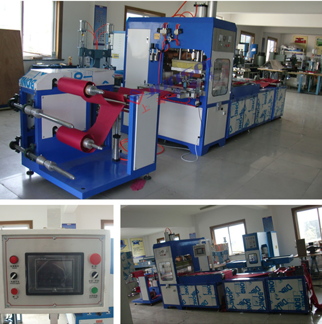 卷料生產(chǎn),自動拉料,自動收料,PLC系統(tǒng)控制,光眼定位(色標定位),可準確定位帶印刷材料,操作方便,省人工,替代傳統(tǒng)單個產(chǎn)品制作,機臺高周波出力大小可定制,規(guī)格大小可調(diào)!